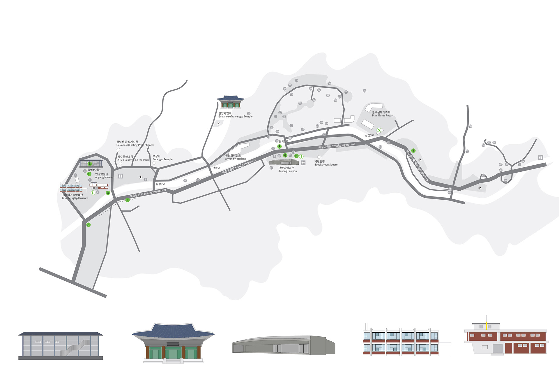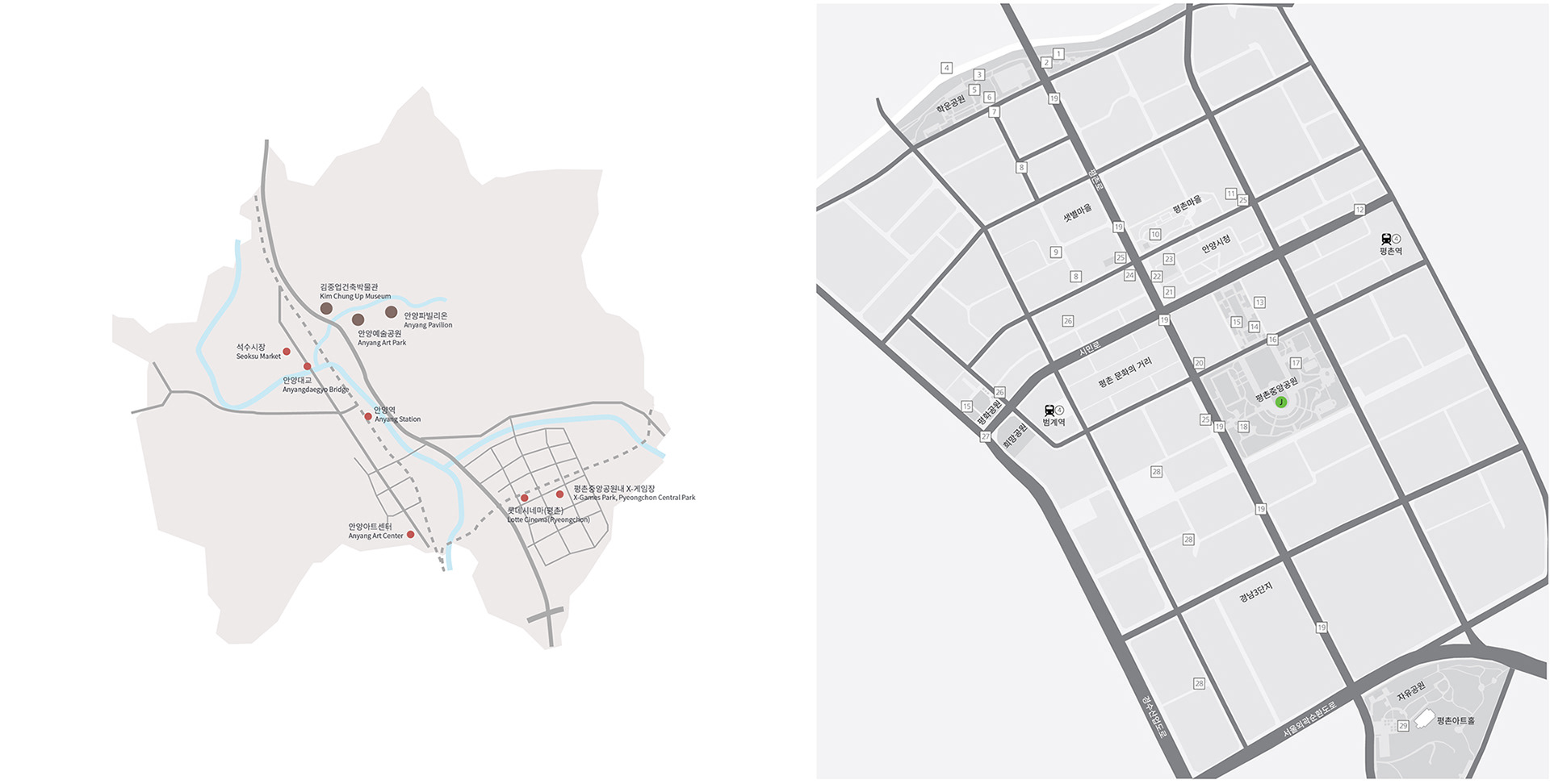 안양예술공원 관련 인쇄물에 들어갈 맵과 야외설치 맵 일러스트